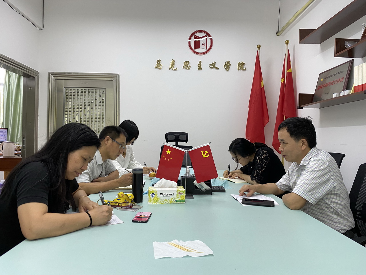 2020年6月11日,科技处副处长(主持工作)杨崇岭带队到马克思主义学院就科研与技术服务工作进行调研。与马克思主义学院院长储水江对马克思主义学院科研人才和科研情况进行深入交流和探讨。储水江院长分析了马克思主义学院教师科研工作的优势和难处,马克思主义学院教师普遍学历高,对于纵向项目具有一定优势,但在横向项目开展方面由于专业限制确实有一定难度,对于要完成双高建设各项指标和科研绩效考核马克思主义学院教师均感受到压力,对此,杨崇岭副处长提出几点建议,首先,对于横向项目开展应开拓思路、组建团队;其次马克思主义学院还需宣传科技处各项政策力度;再者,各学院部门之间也应加强科研工作经验的分享与交流,科技处也会加强科技处各项政策的业务介绍和解疑。